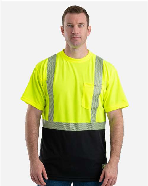 Berne Apparel HVK017 Men's Hi-Vis Class 2 Color Blocked Pocket T-Shirt is ready for custom printing through AMS. Use it for merch drops and branded apparel and custom fishing shirts and outdoor crews, review colors and sizes, upload your logo or design, and move from quote to decorated production with a real sourcing path.