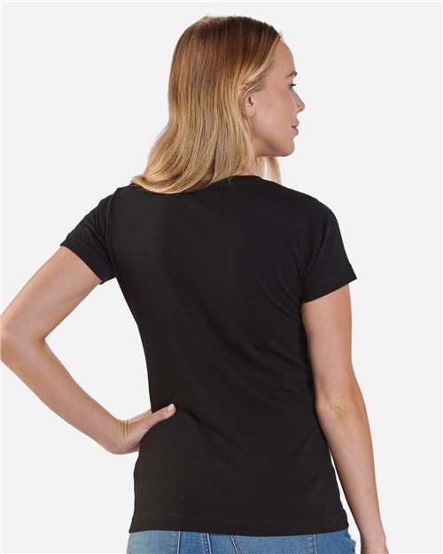4.5 oz./yd², 100% ring-spun cotton Ribbed V-neck collar Self-fabric back neck tape Heat sealed label