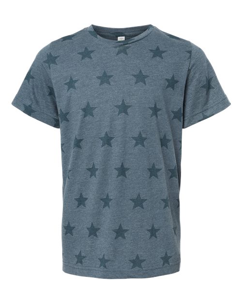 4.5 oz./yd², 60/40 combed ring-spun cotton/ polyester vintage fine jersey with printed star pattern Natural Heather is 100% combed ring-spun cotton with printed star pattern All over soft hand print Ribbed collar Self-fabric back neck tape Double needle sleeves and bottom hem CPSIA compliant tracking label in side seam EasyTear™ label This product meets the following Sustainable Style subcategories: Socially Conscious Manufacturing: This product was made in a facility that is WRAP certified. Responsible Mindset: This brand donates 1% or more of their annual revenue to several nonprofit organizations such as Children of Fallen Soldiers Relief Fund, Inc., and Fisher House™