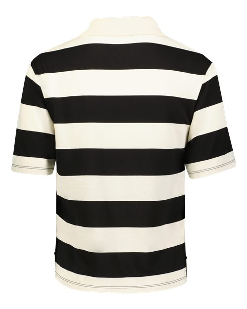 6 oz./yd², 57/33/10 polyester/viscose/cotton yarn dyed stripe jersey Boxy fit and modest cropped length Ribbed-knit collar Set-in sleeves Side vents Tagless label