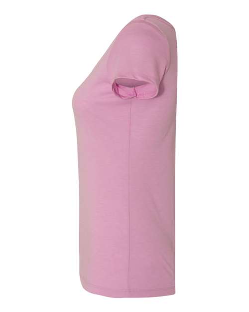 4.3 oz./yd², 50/25/25 polyester/combed ringspun cotton/rayon Fabric laundered Set-in 1x1 triblend baby rib collar with coverstitching Scoop neck Side seams with feminine curve Satin label