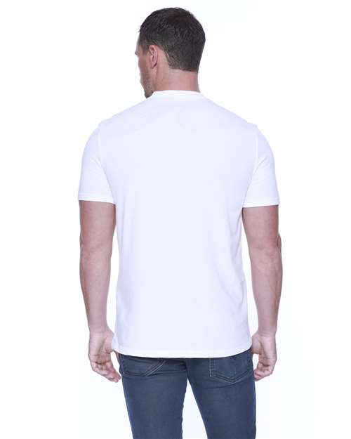 4.3 oz./yd²., 52/48 ultra-fine cotton blend/polyester, 30 singles Heather White is 50/25/25 polyester/cotton/rayon Retail fit Side seams Three-button henley Tear-away label Treated water and rainwater harvesting are main sources of water. 75 million liters of rainwater storage on premise Wastewater is treated using bio-towers, bio-ponds and finally electro-chemical treatment to remove color Almost 70% of energy requirements of the mills are met from windmills, targeted for 90% by 2025. 5MW solar power plant in progress Made in a W.R.A.P. certified factory